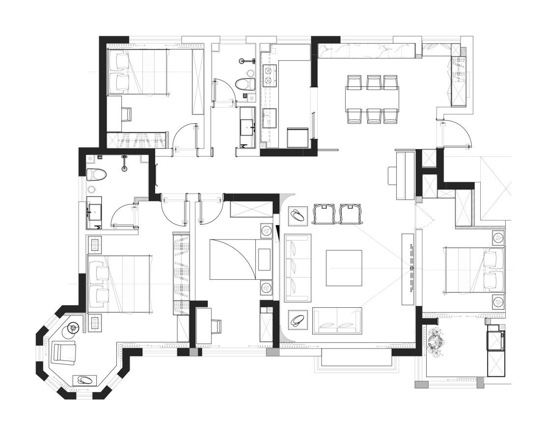 不同于客餐廳的新中式的風(fēng)格,臥室想要營造的感覺是舒適自然的,褪掉一天工作的辛苦和勞累,擁有一個(gè)舒適的空間可以休息補(bǔ)充力量。
