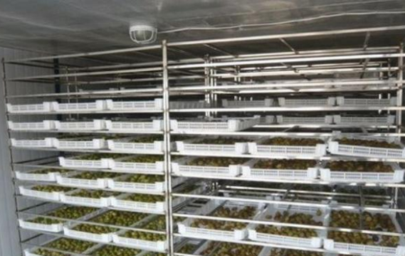 無花果整顆烘干,需要的時間較長一些,先將無花果均勻碼在物料車內(nèi),推入烘干房干燥25-30小時后,再推出烘房外陰涼的地方放置一天,再推入烘房內(nèi)進(jìn)行二次的烘干。無花果烘干機一天的烘干量視機型規(guī)格決定,少的以600-800 斤一個批次,多的2000斤一個批次,10000斤甚至更大產(chǎn)能則考慮對吹及組合方式即可。無花果干燥冷卻后還要有一個回軟的過程,注意用塑料薄膜保護(hù)好,以防細(xì)菌滋生。經(jīng)過2天左右的回軟過程即可封袋包裝入庫了。